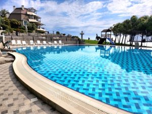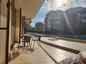 Dupa lungi cautari si verificare de recenzii am ales Aparthotelul Onegin situat in apropierea plajei Harmanite. Camerele sunt curate, spatioase, dotate cu frigider, iar fiecare camera de la parter avea iesire catre piscina. Un lucru minunat, iesi din camera si dai in sezlonguri si piscina. Iar faptul ca hotelul este pozitionat la 2 minute de mers pe jos de plaja este un plus. Un alt plus a fost faptul ca vis-a-vis de hotel se afla parcare. Mai multe detalii gasiti aici.