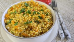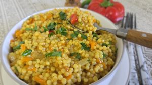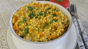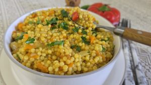 Cuscus cu legume este o mancare pentru cei aflati in criza de timp. Se prepara rapid, insa este extrem de hranitoare. Cuscusul este un aliment din bucataria nord- africana, un prepara versatil si usor de gatit. Nutritional, cuscusul este bogat in fibre, vitamine si minerale , fiind o sursa excelenta de carbohidrati. Cuscusul se poate servi ca si garnitura pentru diverse tocane sau simplu, cu legume, cu salate.