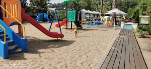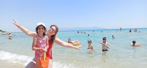 Plaja Batis, situată într-un golf la 3-4 km de Kavala, este cea care ne-a plăcut cel mai mult. Avea restaurant, umbreluțe cu sezlonguri, piscină pentru copii și piscină pentru adulți si loc de joacă. Am găsit vestiare , dușuri și toalete. Aici se plătește o intrare de 6 euro/ persoana și 4 euro/ copil, dar din jumătate din acești bani poți comanda o băutură sau ce dorește fiecare. Practic costă 3 euro sezlongul, iar de 3 euro poți comanda ceva. Pont: au un hot-dog și niște clătite delicioase.