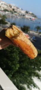 În plus, la tot pasul se ȋntâlnesc cofetării cu diverse preparate tradiționale de unde nu poți rata o Portokalopita sau un Revani, un Cataif sau o Baclava. Sau chiar o ȋnghețată cu doar 1 euro cupa. Toate iți fac cu ochiul. Am găsit aici un fel de gogoasă umplută cu crema Kinder Bueno, un deliciu.