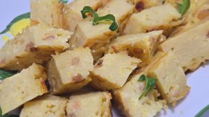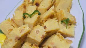 5.Dupa coacere lasam pastele sa se raceasca si le rasturnam pe un tocator. Le taiem in forma de romburi sau patrate. Pofta buna!