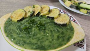 Servim mancarea de spanac cu dovlecei pane. Pofta buna!