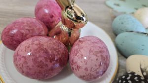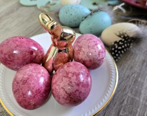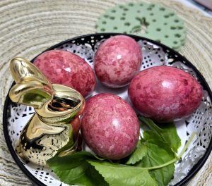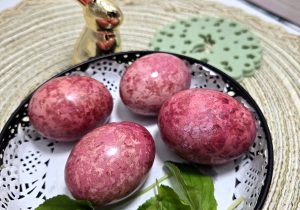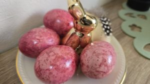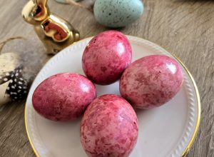 Oua marmorate vopsite natural cu sfecla rosie am ales sa fac anul acesta pentru Paste pentru ca aveam 2 sfecle mari la frigider de ceva timp. Uitati cat de frumos au iesit! Sunt superbe! Eu am facut putine oua cu aceasta tehnica pentru ca nu stiam cum vor iesi, insa imi plac tare mult. O alta parte dintre ouale pentru acest Paste le-am facut cu tehnica cariocilor, insa acelea nu sunt gata sa vi le pot arata.