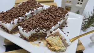 - Lasam prajitura la rece pentru minim 30 de minute inainte de portionare.