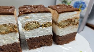 Dam prajitura la rece cateva ore sau peste noapte, dupa care portionam cu un cutit cu lama lata. Pofta buna!
