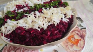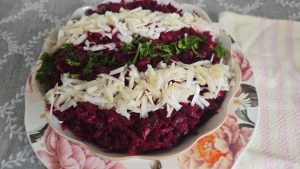 Va recomand si salata Suba cu sfecla rosie, o salata in straturi foarte gustoasa.