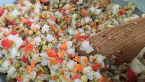 2.Tocam cubulete legumele fierte si le punem intr-un bol.