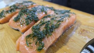 1.Mai intai lasam somonul sa se dezghete la temperatura camerei. Acesta trebuie sa fie perfect dezghetat in momentul gatirii.