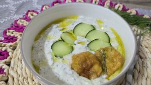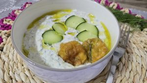- Noi am servit sosul de iaurt cu castravete cu dovlecei pane. Reteta pentru dovlecei pane o gasiti aici.