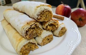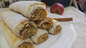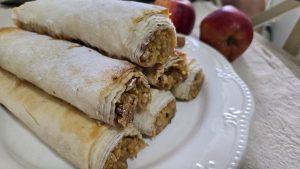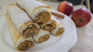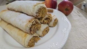 Strudele cu mere caramelizate si nuca aromatizate cu scortisoara- un deliciu de toamna. Iubim placinta si strudelul indiferent ca sunt facute cu foi fragede de casa, cu foi sau aluat foietaj din comert si indiferent ca sunt umplute cu mere, cu branza sau cu dovleac. De data asta am ales sa facem strudel cu mere caramelizate si cu multa nuca.